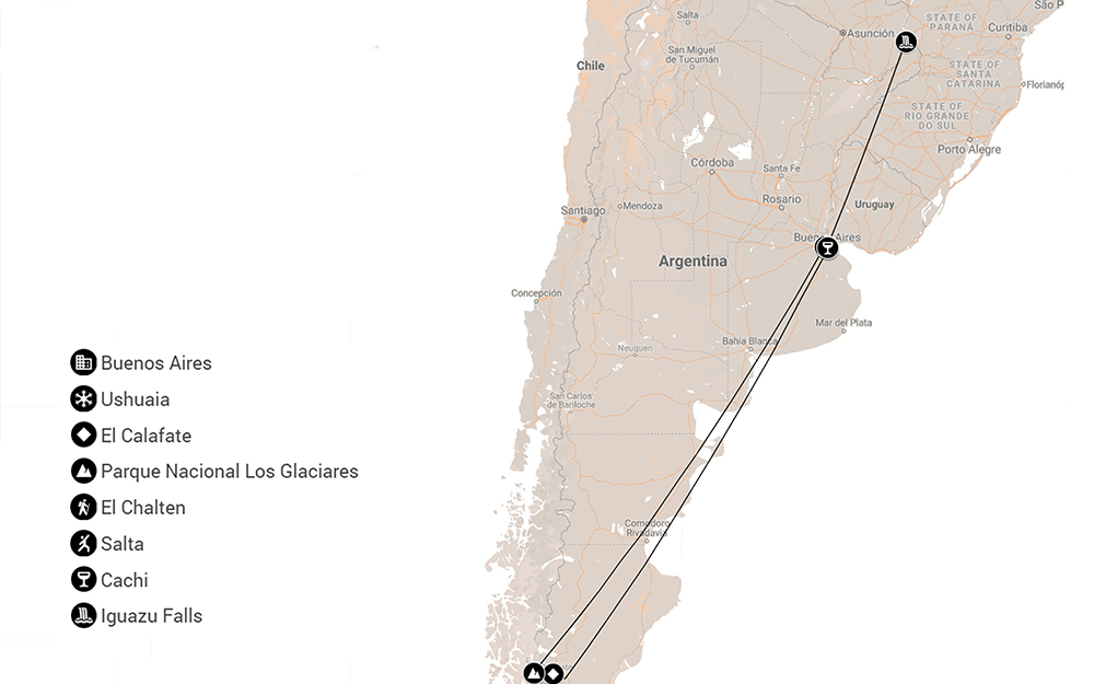 Tangodansers, gletsjers en gaucho’s wachten je op langs deze waanzinnige reisroute naar de hoogtepunten van Argentinië. Je reist kriskras door het land, van het uiterste noorden naar het zuidelijkste puntje, van de meest sensuele steden naar het indrukwekkende Andesgebergte en de vlaktes van Patagonië.