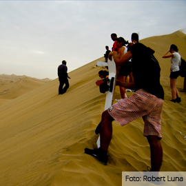 Zand in je oren. Zand in je haren. Zand in je mond. Waar niet? Na een potje sandboarden kun je er vanuit gaan dat je van top tot teen onder het zand zit, maar dat hoort er allemaal bij. In het oasestadje Huacachina is sandboarden de populairste activiteit. Met een dune buggy, een soort quad, rijd je naar de toppen van de omliggende zandduinen om er met een speciaal board zo van af te roetsjen. Adrenalinekick gegarandeerd!