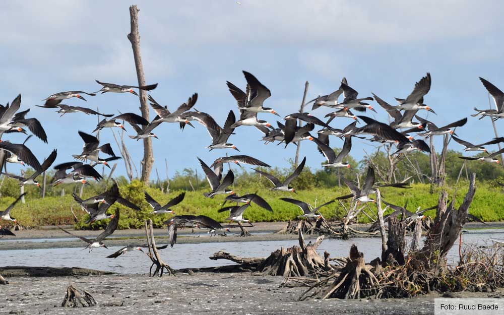 De weg vervolgt zich langs palmbomen, bananenplantages, uitgestrekte polders en rijstvelden naar Nieuw Nickerie, de tweede stad van Suriname. Het is je uitvalsbasis voor een boottocht over de lagunes van vogelaarsparadijs Bigi Pan. Overdag spot je hier onder andere de Rode Ibis en flamingo’s en ‘s avonds ga je met een gids op zoek naar kaaimannen.