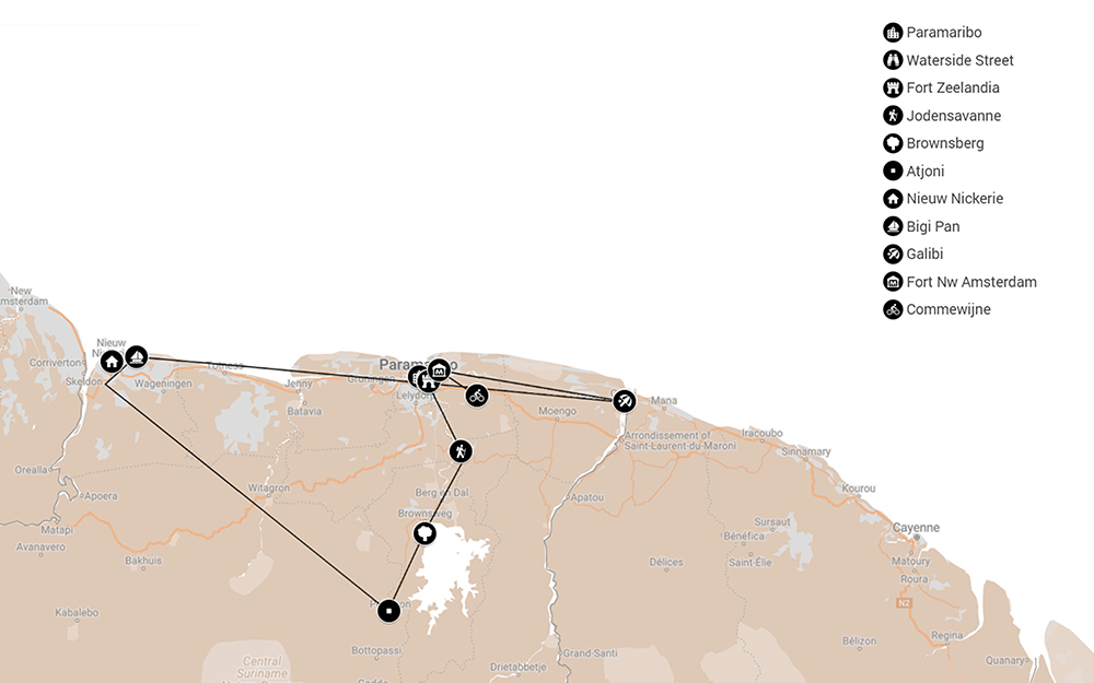 Voor wie eenmaal aangekomen in Suriname geen genoeg krijgt van de tropische hoofdstad is er goed nieuws, want Paramaribo vormt vrijwel altijd het knooppunt van een rondreis door Suriname. En dat is bij deze reisroute van drie weken niet anders. Maar er is meer!